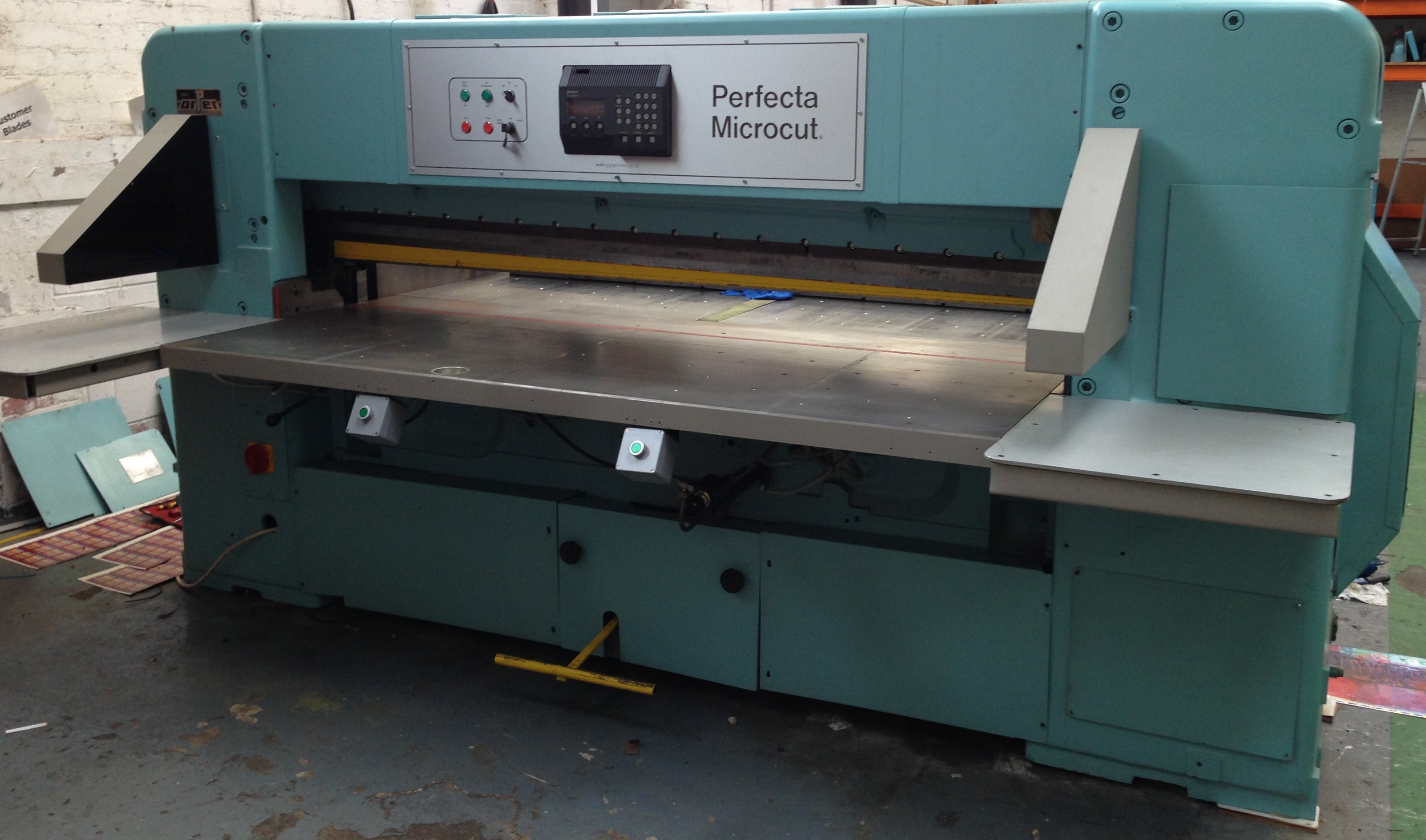 Premier Guillotine Systems has for three decades specialised in used Paper Cutting Guillotines and the supply of spare parts, maintenance, repairs and guarding of this type of Equipment. Since 2001 we have become the UK’s leaders in the supply of new Large Format guillotines, Die-cutting platens, large format drilling systems and bespoke equipment designed to our customers requirements.