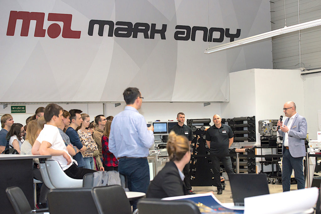 Mark Andy Europe held another of its educational workshops at the demo centre in Warsaw recently. The event was organised for the students of the Printing Technologies Unit that is part of the Faculty of Production Engineering at Warsaw Technical University. The Open House, which was supported by Mark Andy’s partners including Dupont, Flint Group, Flexmar and PC Print (the local representative of Kurz), provided an opportunity to show several narrow web presses from the company’s flexo and digital portfolio.